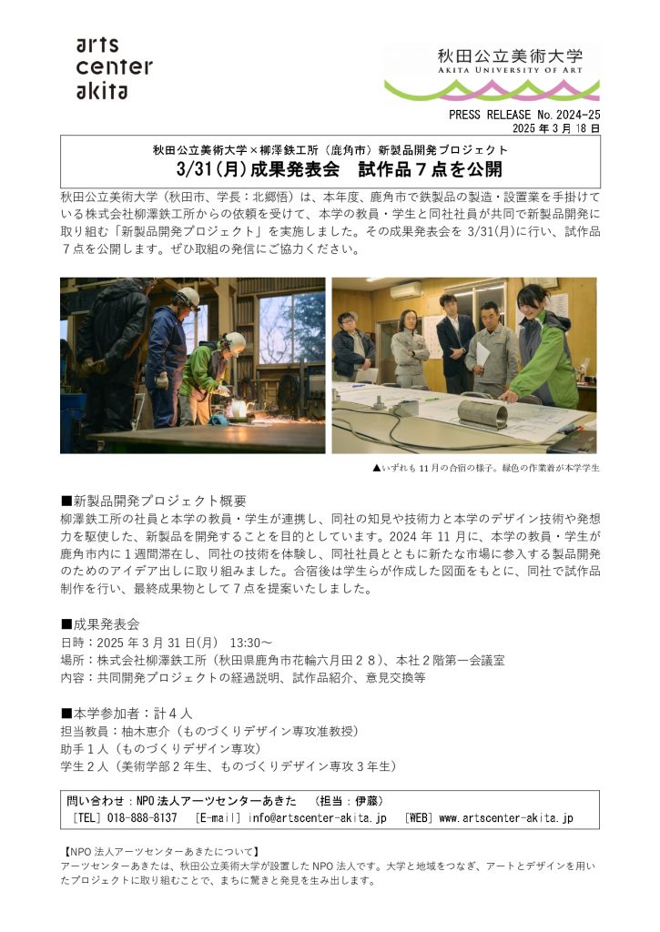 秋田公立美術大学×柳澤鉄工所 共同開発プロジェクト プレスリリース