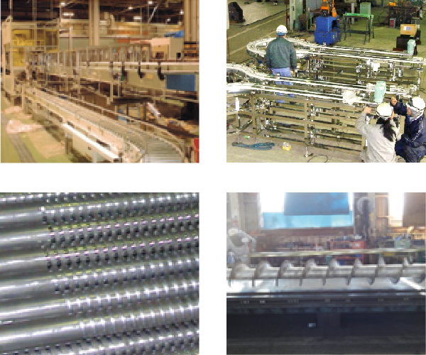 コンベアは製作、組立、試運転そして据付までの全工程を一貫した受注に対応しています。特に食品関連のステンレス材を使用したラインの構築や部品加工を得意としており、当社のパイプ加工技術と合わせた製品には高い評価をいただいています。そのほかにもスクリューコンベアや各種製造ラインのコンベアを製造しています。